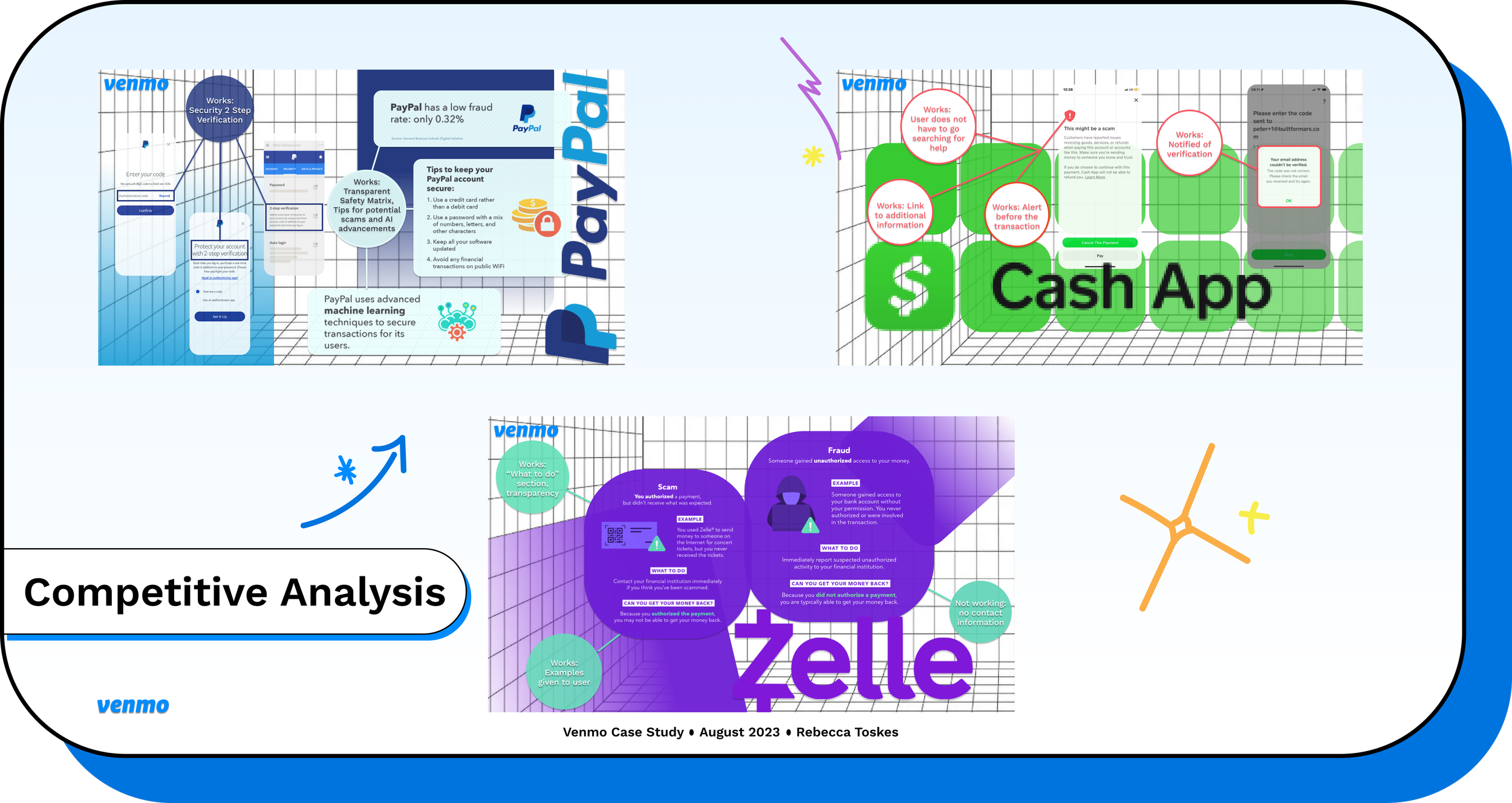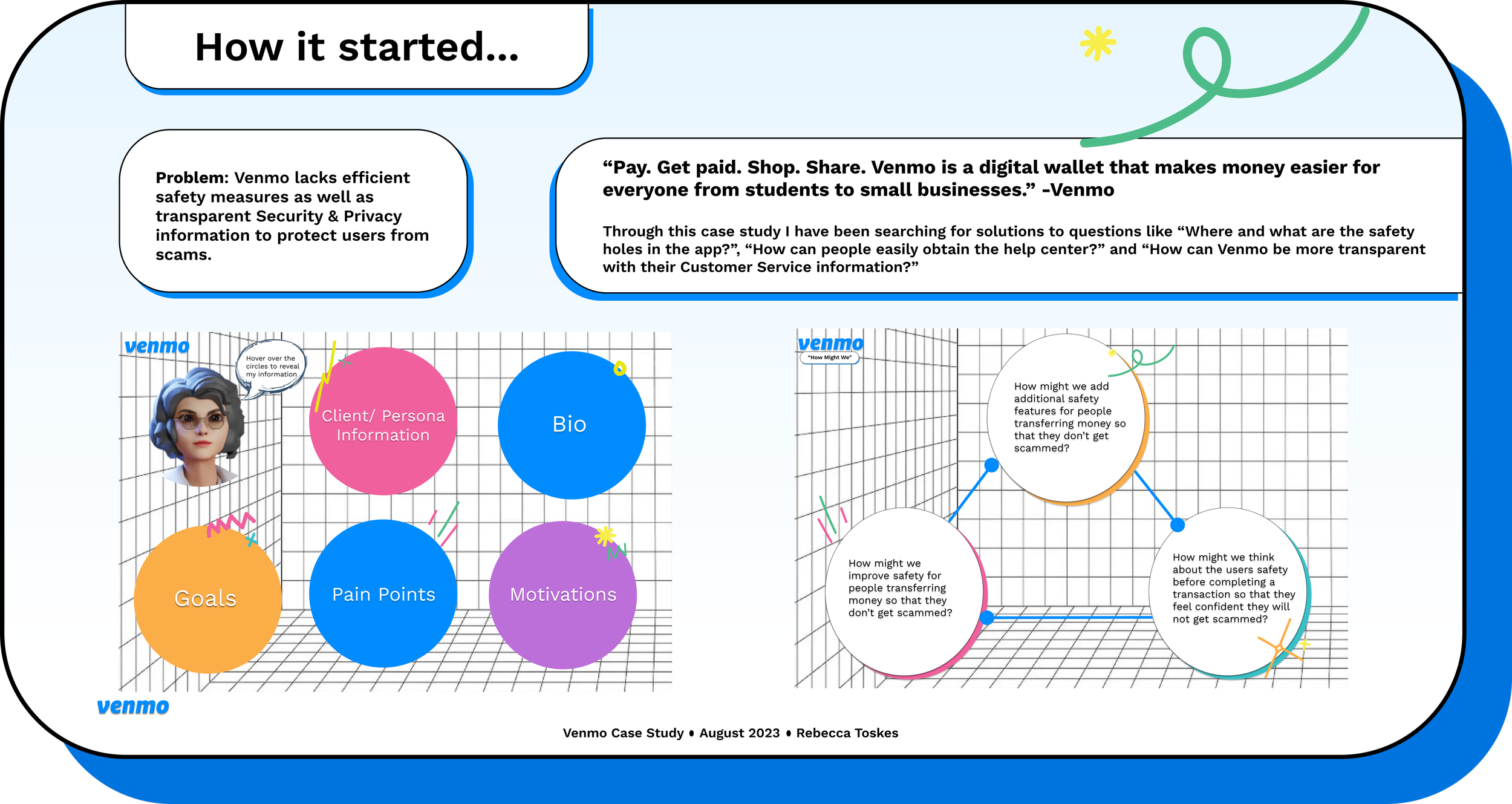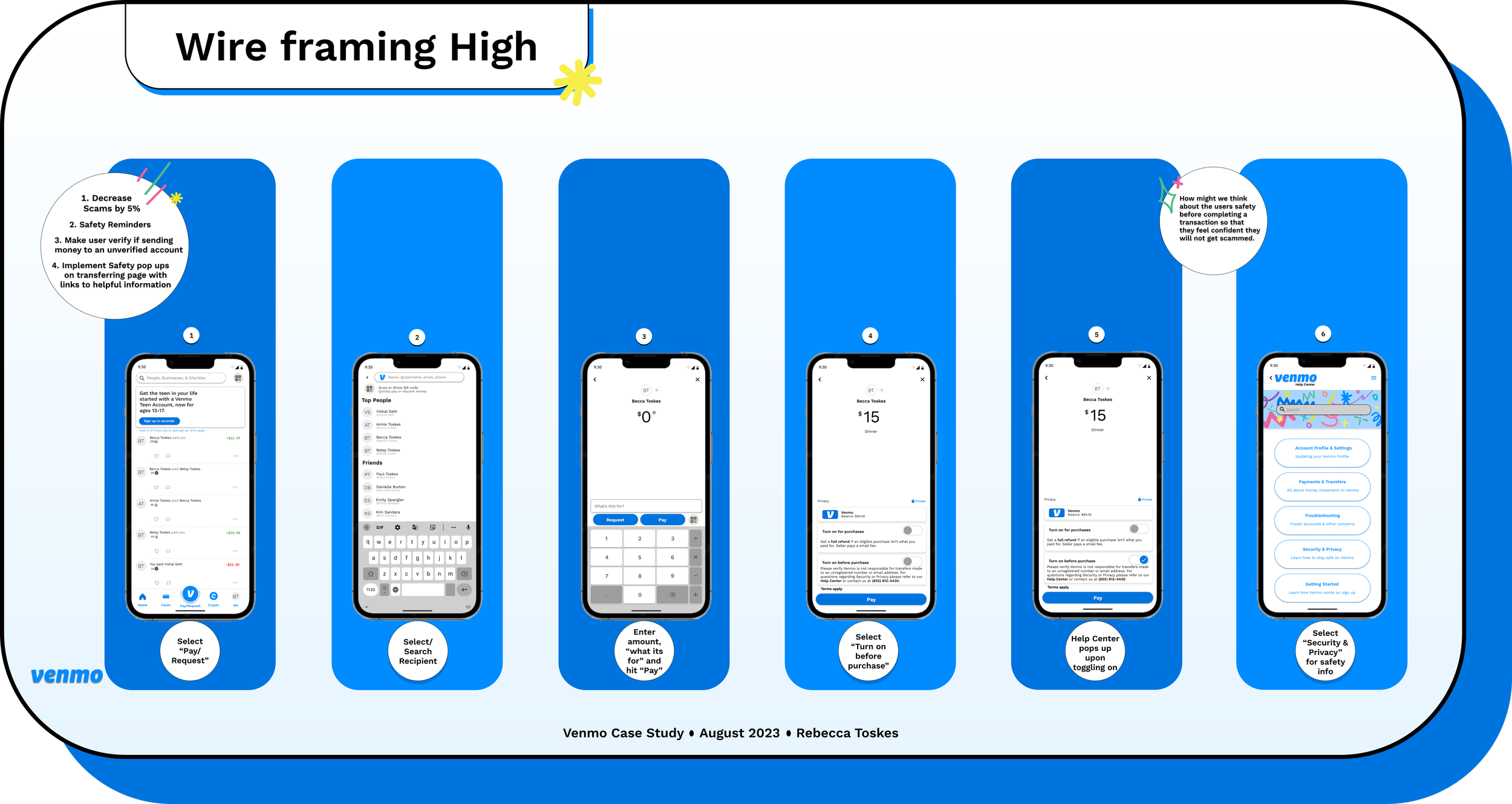 Venmo lacks efficient safety measures as well as transparent Security & Privacy information to protect users from scams. Through this case study I have been searching for solutions to questions like “Where and what are the safety holes in the app?”, “How can people easily obtain the help center?” and “How can Venmo be more transparent with their Customer Service information?”